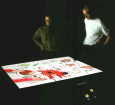 An interactive video installation that converges old and new genres (film noire, video games, video installation art, Exquisite Corpse structures) into an ironic mix. Two characters meet across a dinner table and only their animated hands appear on screen - reaching, spearing, gesturing - their food and witty dialogue revealing a mysterious tale. The viewer/guest chooses the characters from a 'menu' of gender and 'class'. Indigestion uses technologies of "choice" to question the rhetoric of choice surrounding interactive technologies, politics and class distinctions. British premiere. Diller and Scofidio are an American artistic partnership who have exhibited at many of the key art museums in North America and have received awards including a grant to produce Indigestion at Banff Centre for the Arts, Canada. They have written two recent books Flesh and Back to the Front and have worked on many cross-media projects involving architecture and dance. Above is the original copy from 1996. Below is additional material: Refresh by Diller + Scofidio |